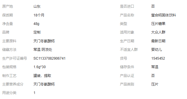 天门冬氨酸钙小分子植物钙配方生产定制螯合钙固体饮料现货可代发