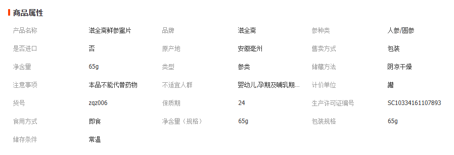 【人参蜜片】长白山人参蜜片鲜参红参蜜片蜜制品厂家直发65g铁罐