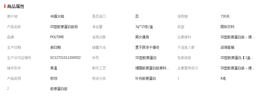 【胶原蛋白粉】三重胶原蛋白肽粉 Ⅲ型胶原弹性蛋白小分子易吸收