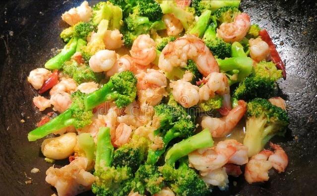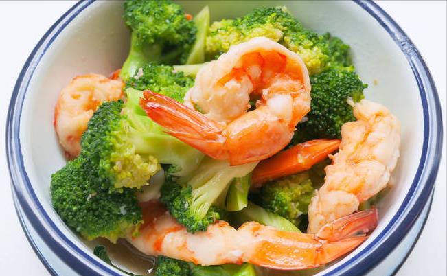 【西兰花炒虾仁】1、大虾去壳、去虾线,然后放在碗中,加上生抽、料酒、胡椒粉、盐,搅拌均匀腌制15分钟。2、西兰花切成小朵,洗净后放在盐水中泡一会儿,再切一点胡萝卜片。起锅烧水,水开后放入西兰花和胡萝卜,焯烫3分钟后盛出。起锅烧油,爆香蒜末后加上虾仁炒到变色,再加上西兰花和胡萝卜,翻炒一段时间,最后放适量的蚝油、生抽、盐,炒匀出锅。