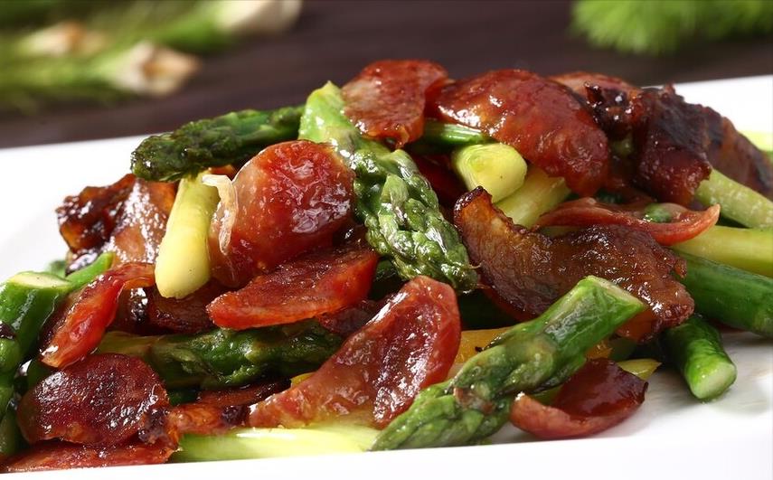 芦笋看上去就很有食欲的样子,味道也不错,并且芦笋被称为“蔬菜之王”,可见它的营养有多高。各种微量元素十分全面,维生素、氨基酸等等,都很丰富,不管是怎么吃,味道都很不错。【芦笋炒腊肉】1、腊肉放在水里泡一会儿,接着上锅蒸或者下锅煮20分钟,到时间之后取出切片,煮一下或者蒸一下,吃起来更嫩。