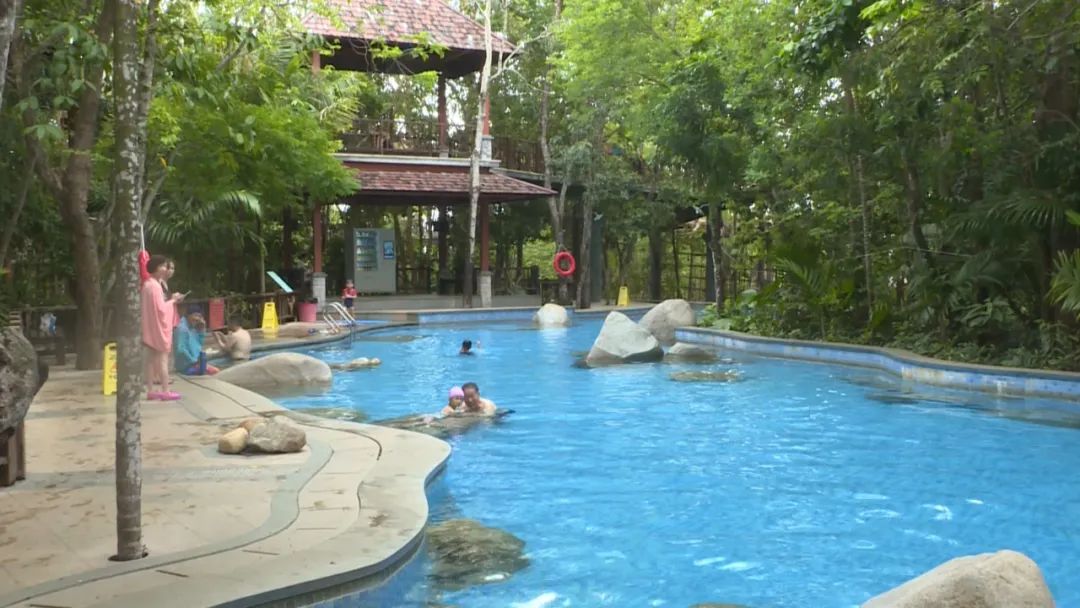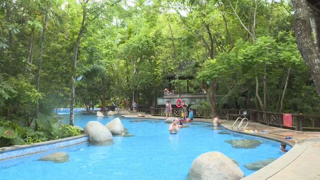 雨林温泉是保亭独特的旅游资源,在七仙岭雨林仙境温泉度假酒店,来自全国各地的游客正在温泉中畅游嬉戏、放松身心,呼吸着饱含负氧离子的新鲜空气,享受着难得的康养时光。