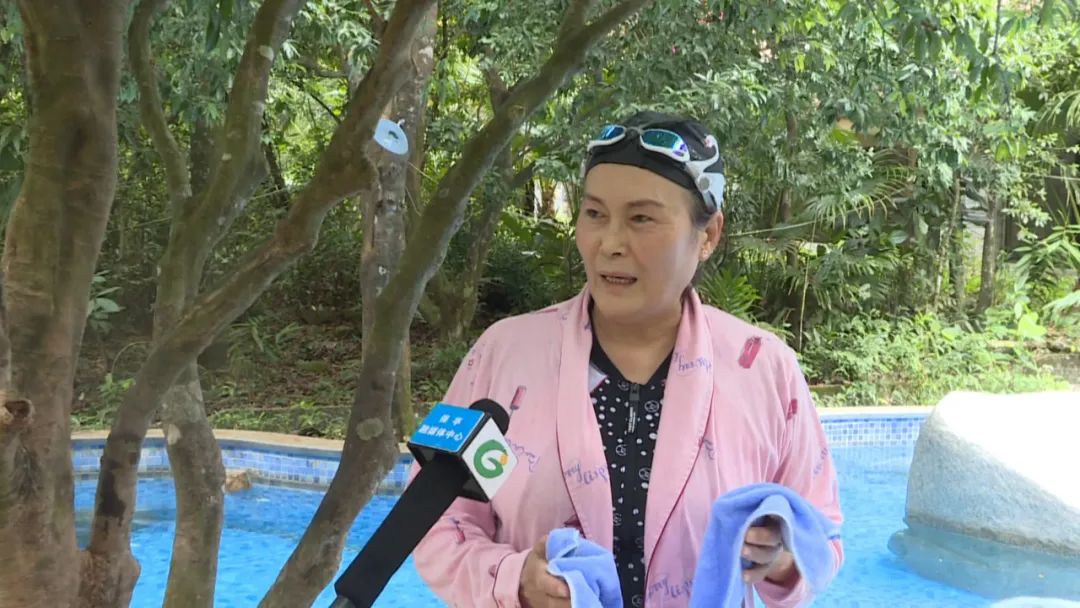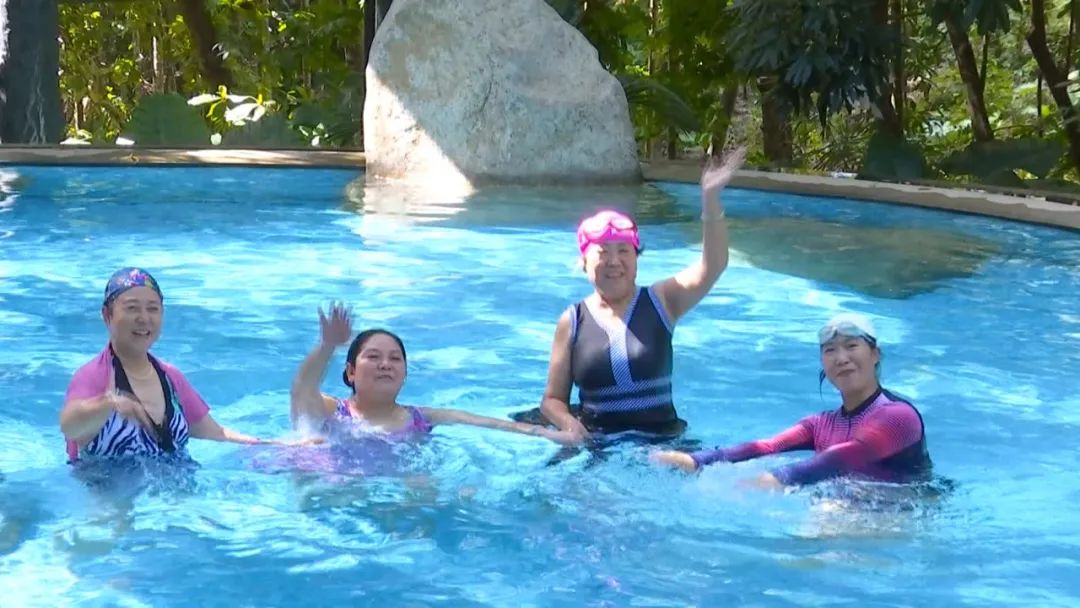 “觉得这个温泉的水特别适宜,我们每周都过来泡一次。这水又清温度又够,对我们老年人锻炼和游泳都非常好。喜欢这个地方,每年都来。”