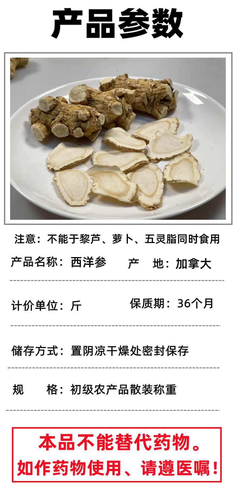 本网页所展示的有关【加拿大西洋参粒头精选西洋参足龄老参短粒切片西洋参粉散装批发_参类_昆明市官渡区誉昊中药材经营部】的信息/图片/参数等由国民康养的会员【昆明市官渡区誉昊中药材经营部】提供,由国民康养会员【昆明市官渡区誉昊中药材经营部】自行对信息/图片/参数等的真实性、准确性和合法性负责,本平台(本网站)仅提供展示服务,请谨慎交易,因交易而产生的法律关系及法律纠纷由您自行协商解决,本平台(本网站)对此不承担任何责任。您在本网页可以浏览【加拿大西洋参粒头精选西洋参足龄老参短粒切片西洋参粉散装批发_参类_昆明市官渡区誉昊中药材经营部】有关的信息/图片/价格等及提供【加拿大西洋参粒头精选西洋参足龄老参短粒切片西洋参粉散装批发_参类_昆明市官渡区誉昊中药材经营部】的商家公司简介、联系方式等信息。