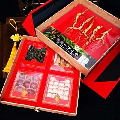 礼品盒人参;野山参;白参;西洋参;孢子粉;蒲公英;蜂蜜
