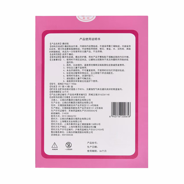 云南白药泰邦女士家庭用暖贴暖宝宝贴3贴装可批发代发量大从优